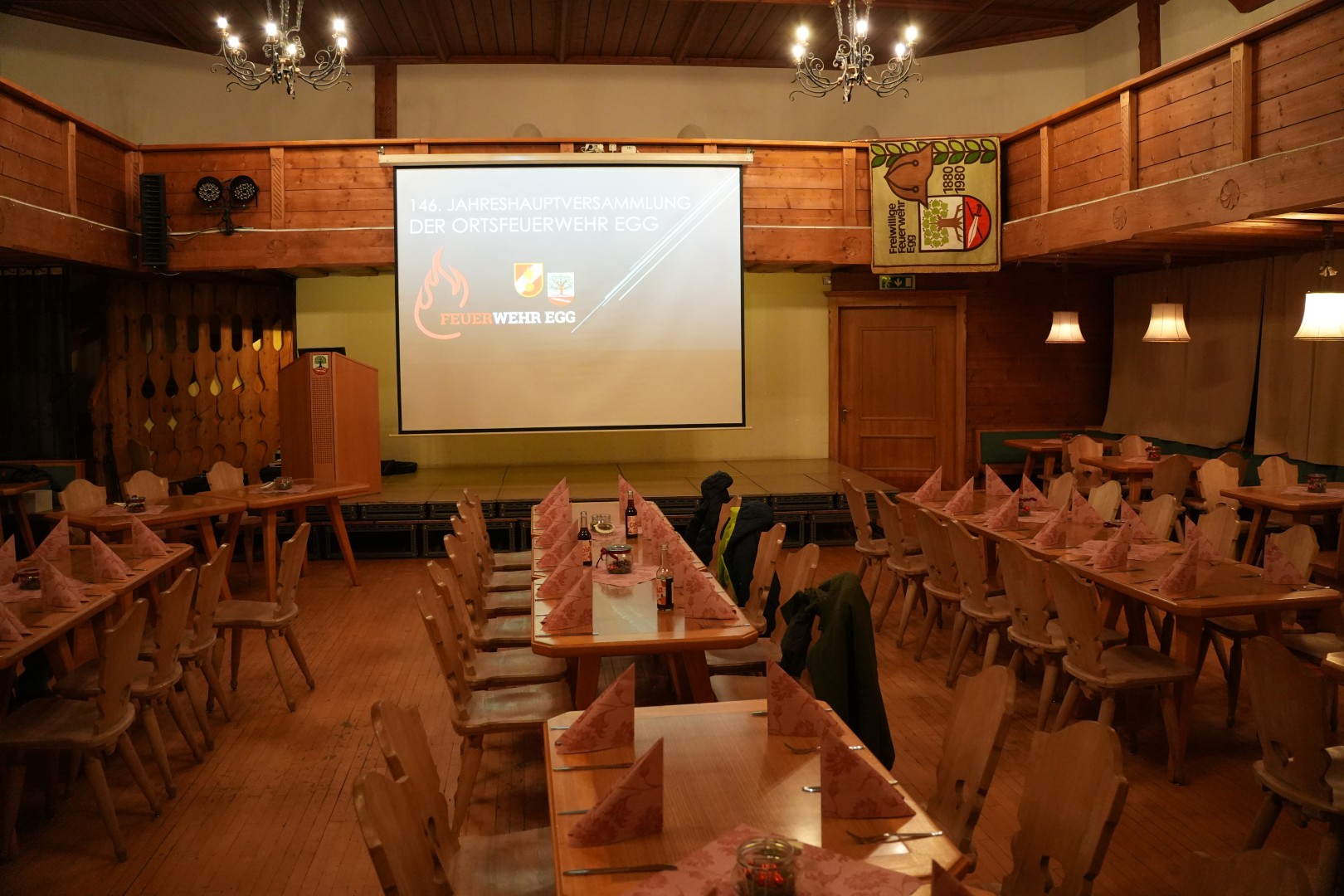 Kommandant Norbert Sutterlüty konnte knapp 70 Feuerwehrkameraden mit Begleitung im Egger Löwensaal begrüßen. Als Ehrengäste nahmen auch Bezirksvertreter Reinhard Karg, Abschnittsfeuerwehrkommandant Johannes Geser, Bürgermeister Paul Sutterlüty und Jean-Pierre Poggioli vom Filmteam BJP-Films an der Veranstaltung teil.