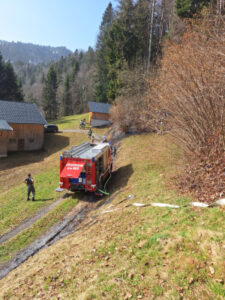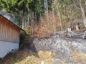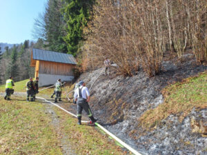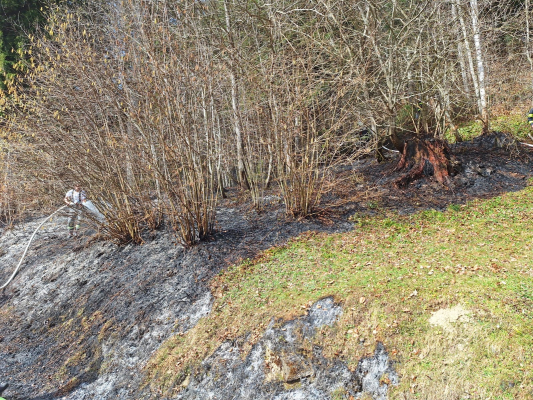 Egg TLF – Schwarzenberg TLF einspeisen, Feuerpatschen und Waldbrandwerkzeug im Einsatz, Egg LFA und Egg MTF mit Flughelfer und WBA auf Bereitschaft beim Feuerwehrhaus Schwarzenberg