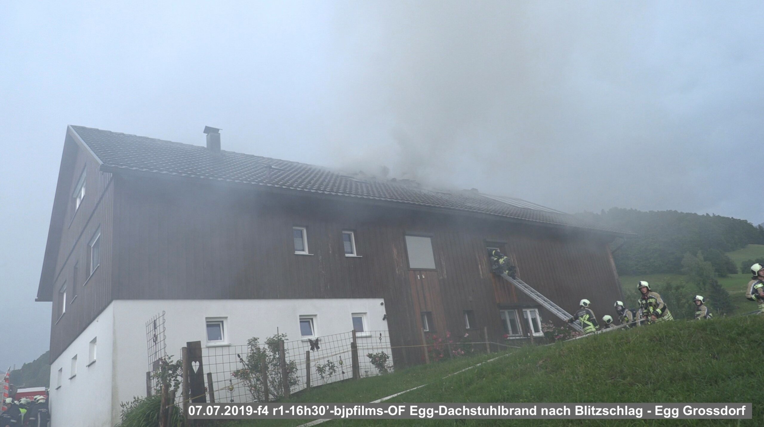 Zubringer erstellt zu Egg Tlf Lüfter in Betrieb genommen. Zweiter Atemschutztrupp im Einsatz.
