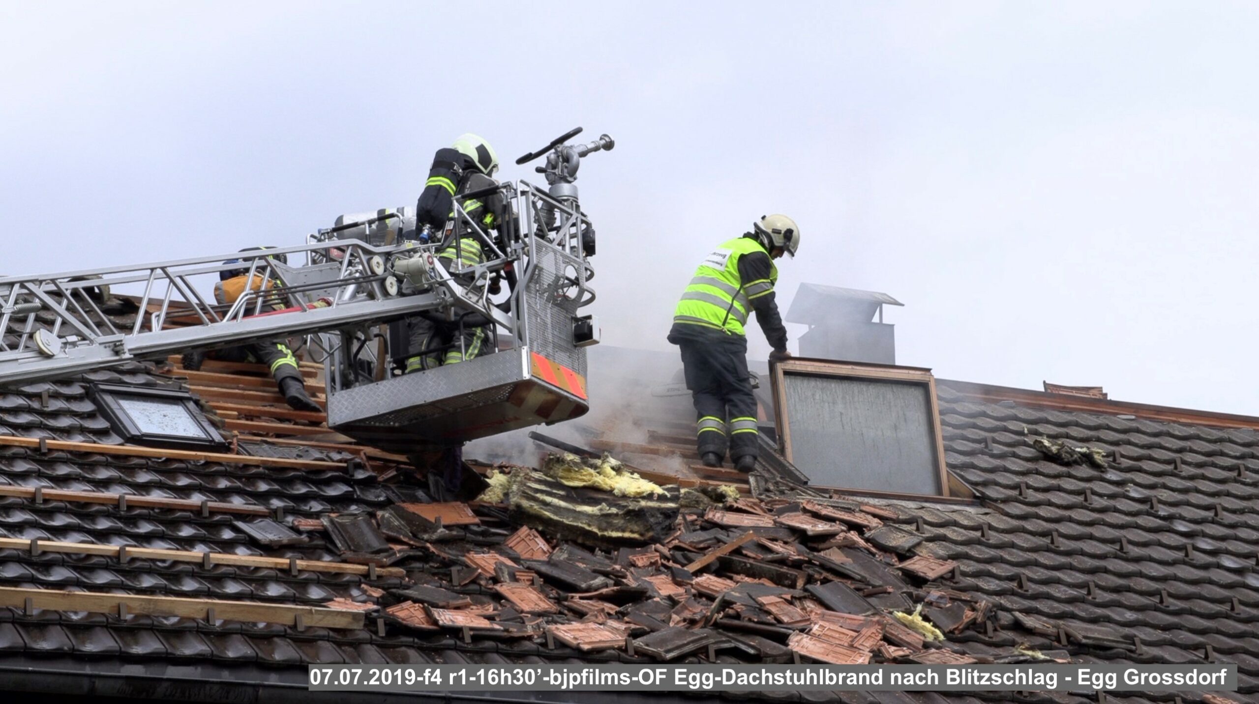 Innenangriff mit HD und Atemschutz über das Stiegenhaus zur Brandbekämpfung ins Dachgeschoss.
