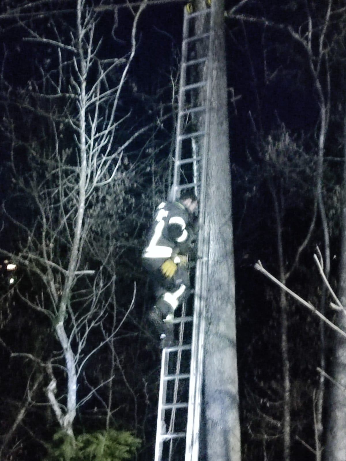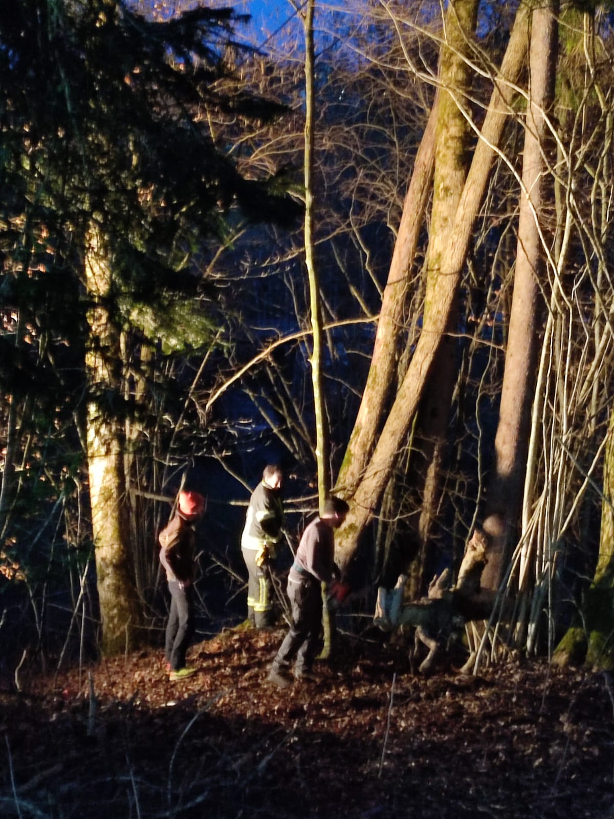 Katze konnte nach 2h lebend der Besitzerin übergeben werden. Katze mit allen möglichen Hilfsmitteln von Baum geborgen.