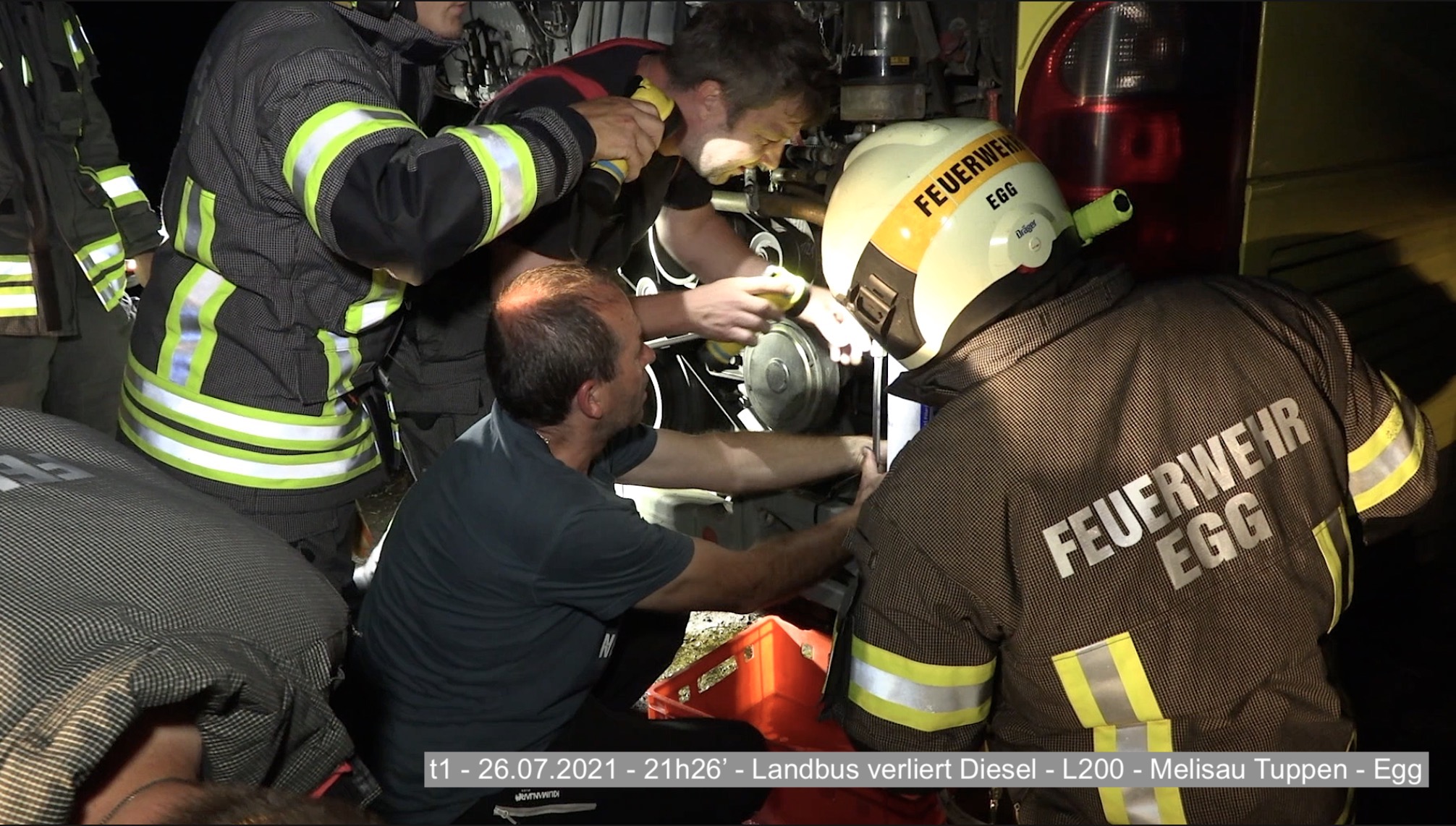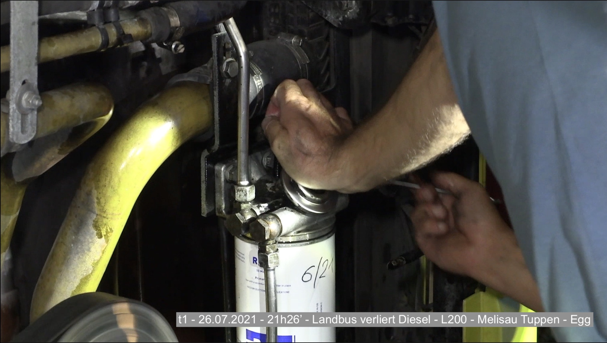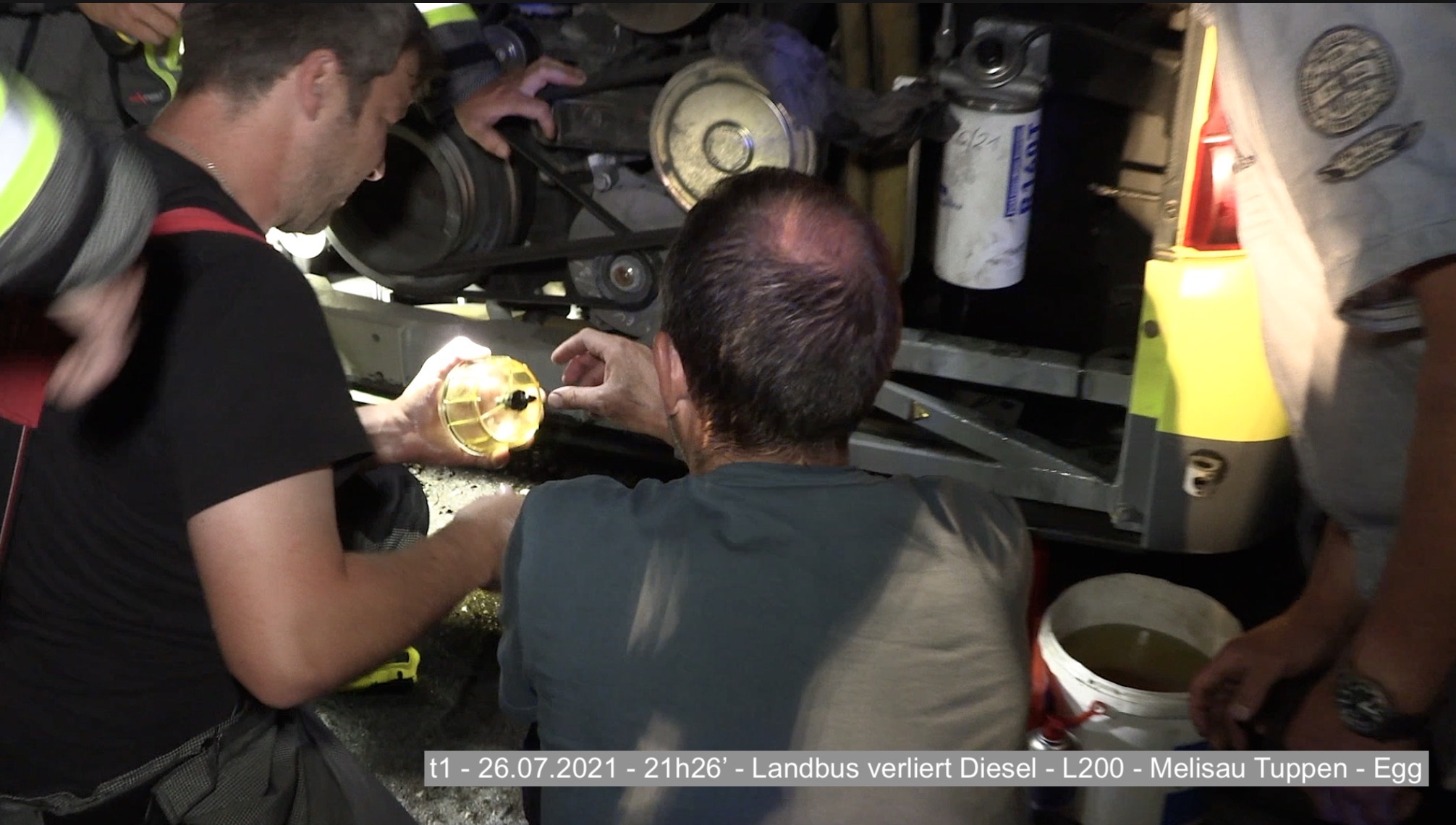 2 Einatzstelle L200 Müselbach > beim Parkplatz nach der dreispurigen Bus hat Diesel verloren, Leck wurde mit Pfropfen abgedichtet, Diesel binden mit Bindemittel. Verkehrsregelung L200.