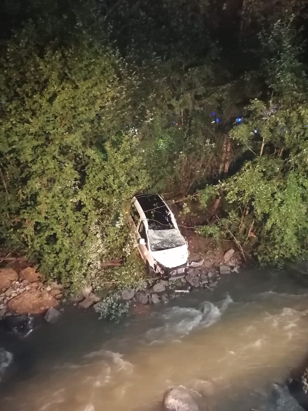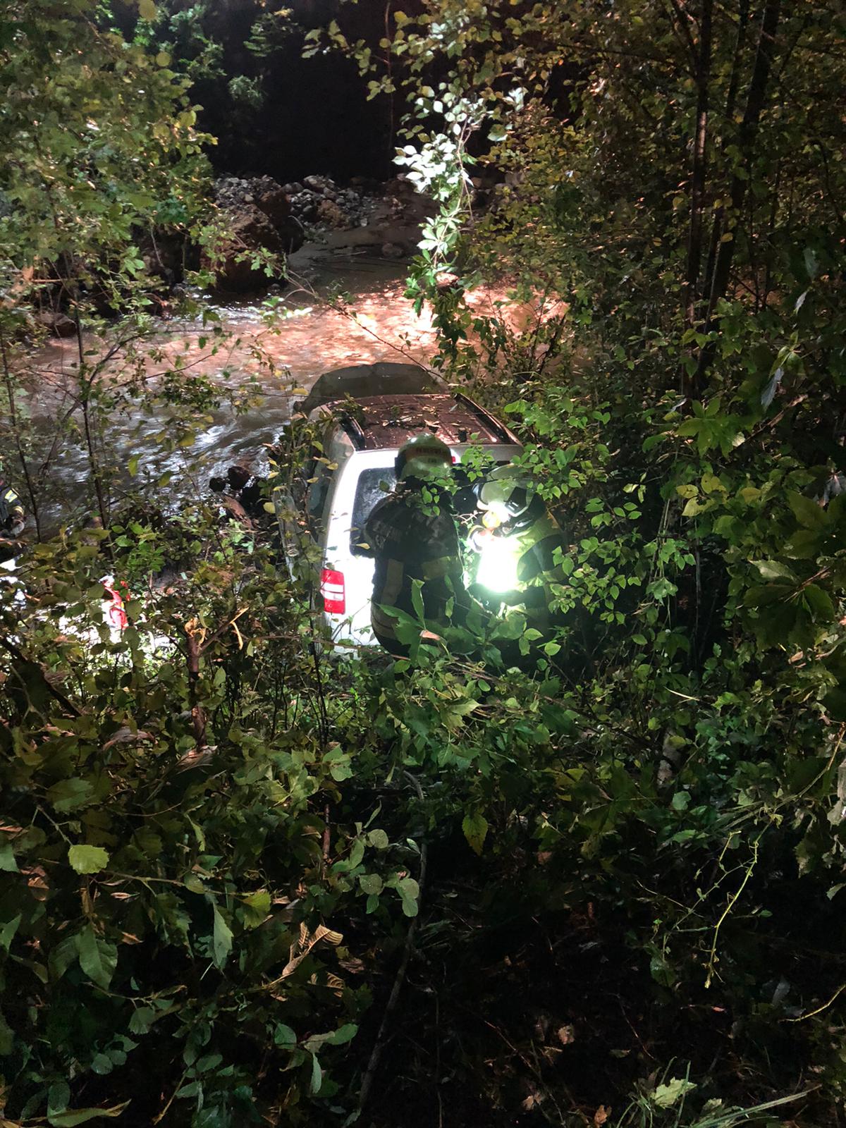 Unser Aufgabe war es nun den PKW mittels Seilwinde zu Bergen