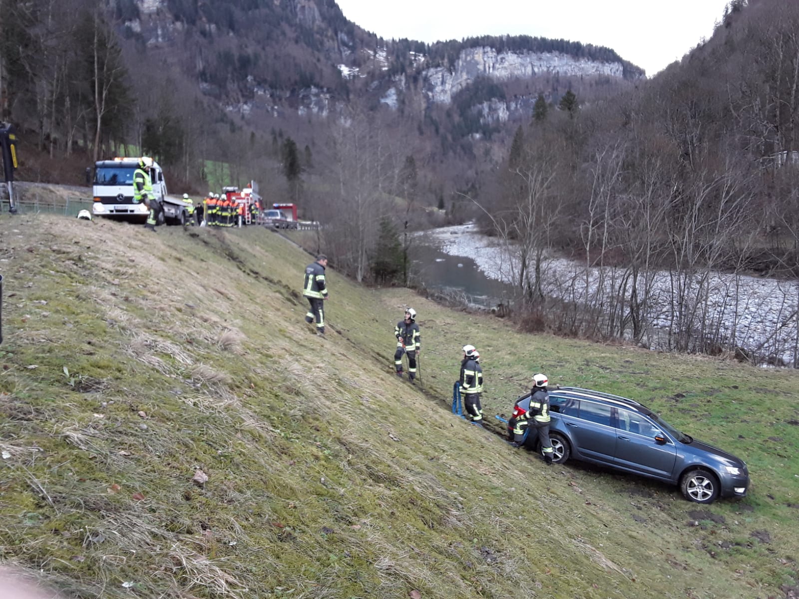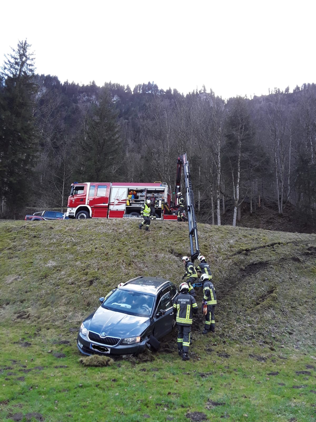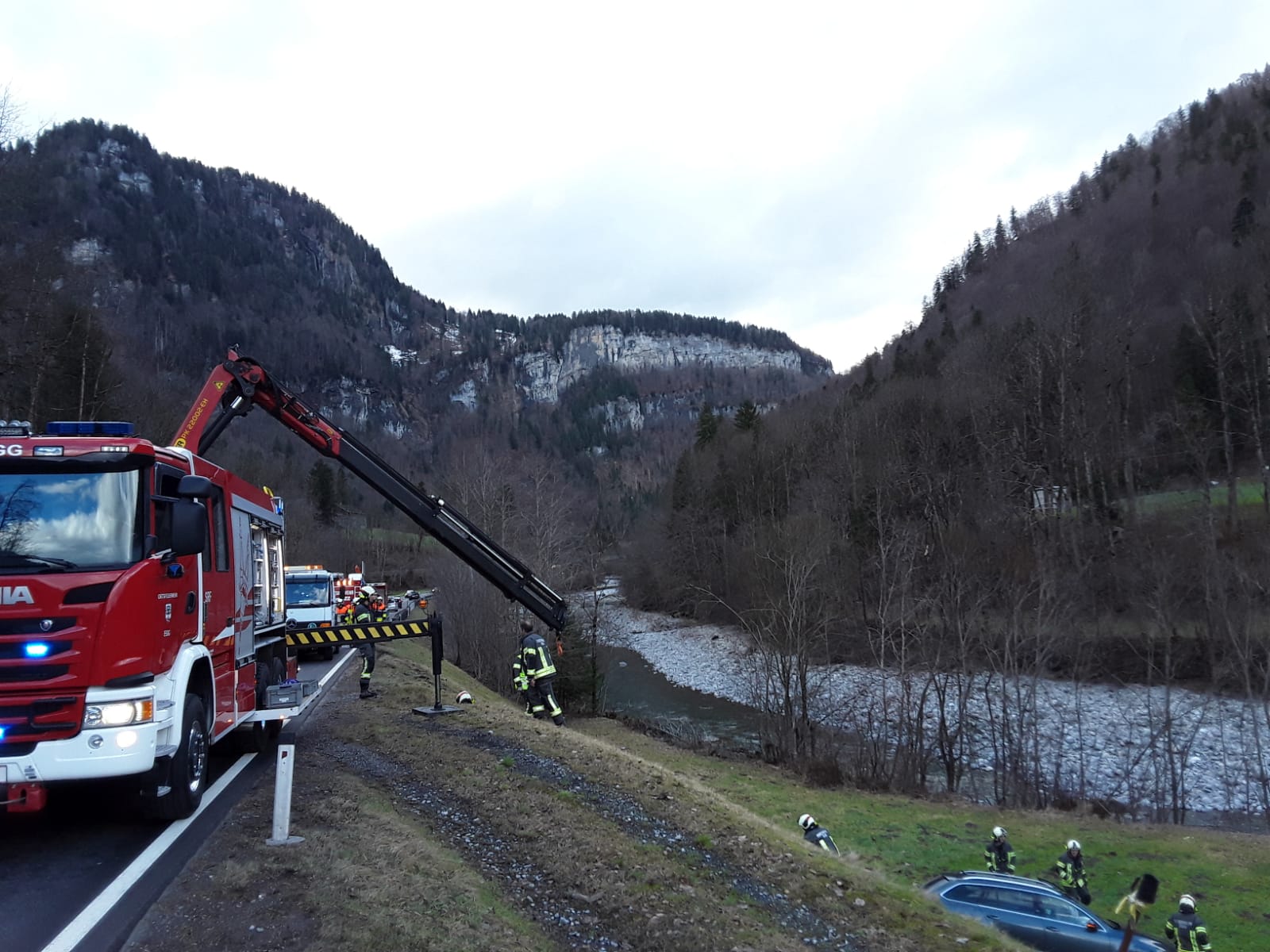 Verkehrsunfall Höhe Fa Bischofberger – PKW bergung mittels Kran