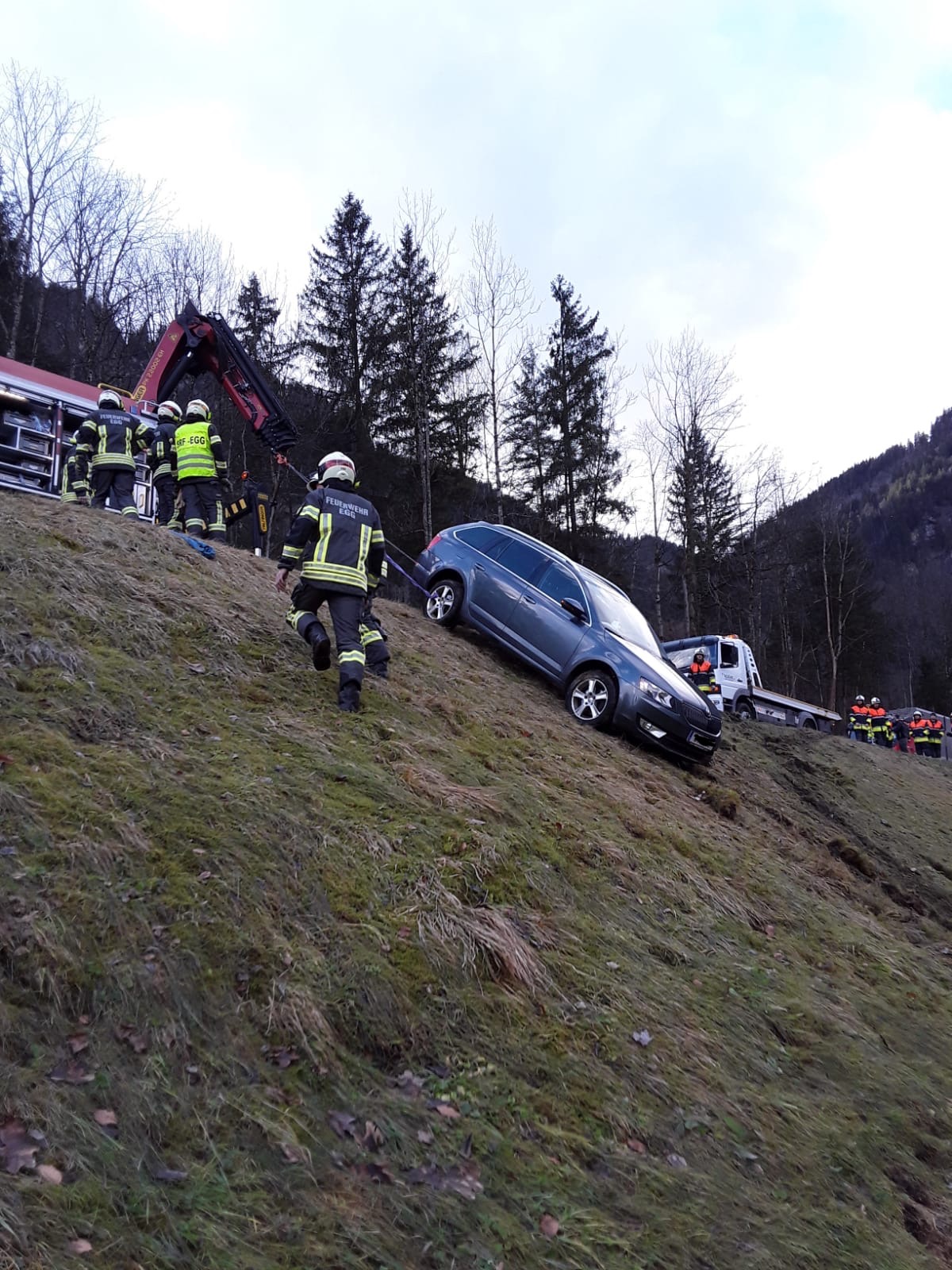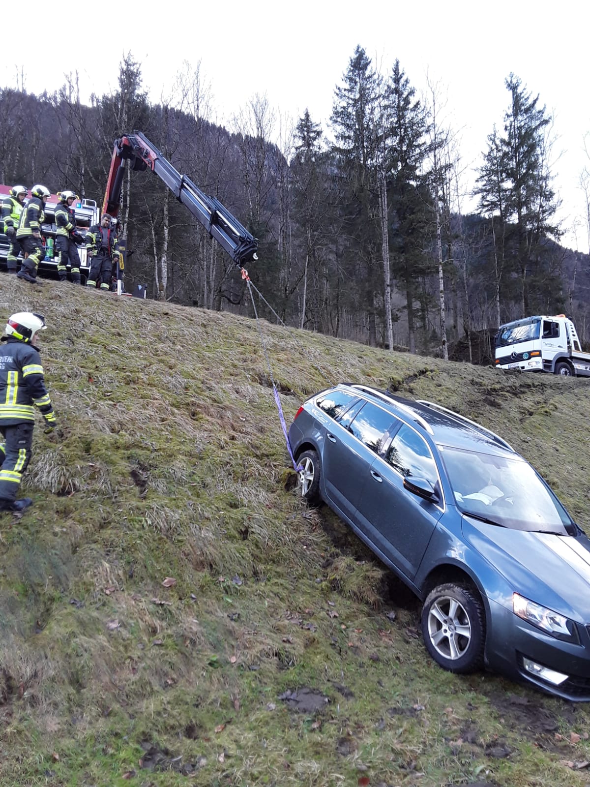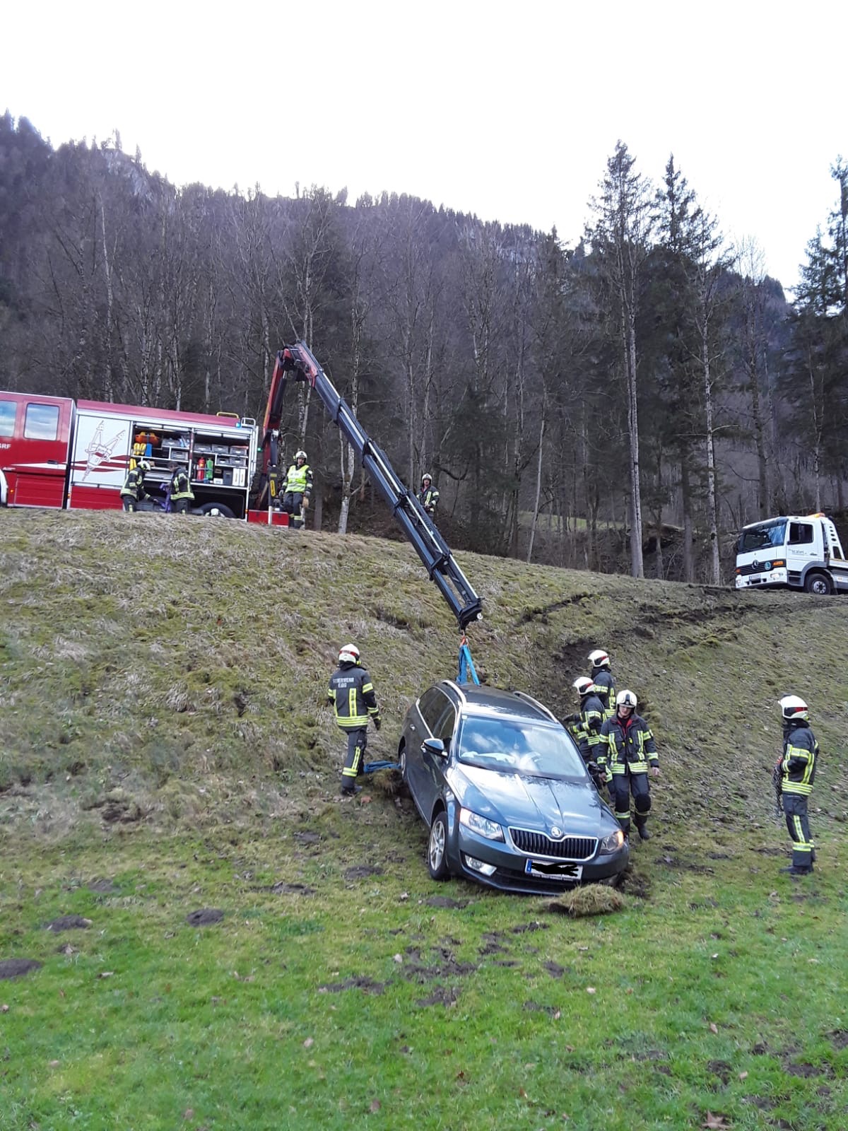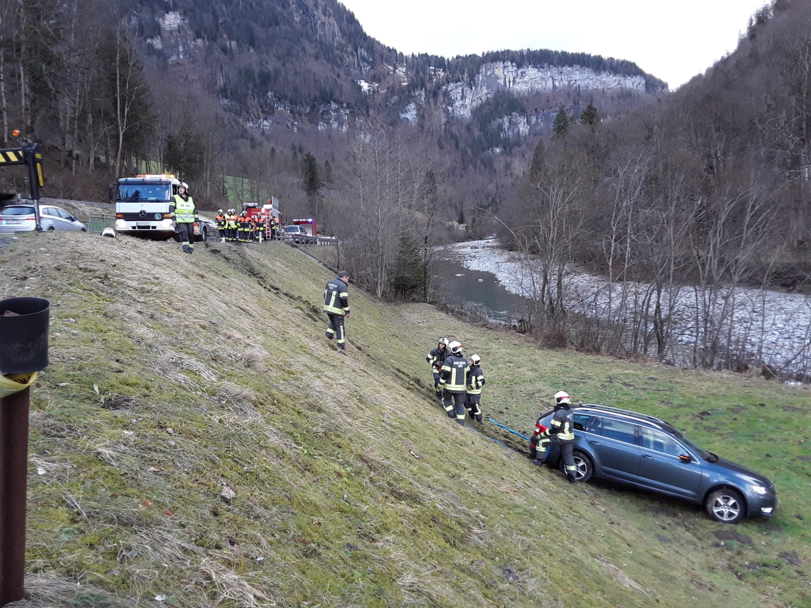 Verkehrsunfall Höhe Fa Bischofberger – PKW bergung mittels Kran