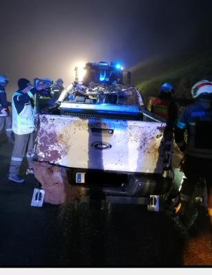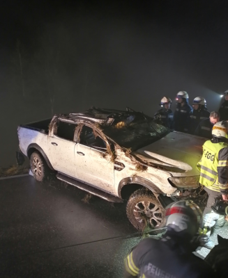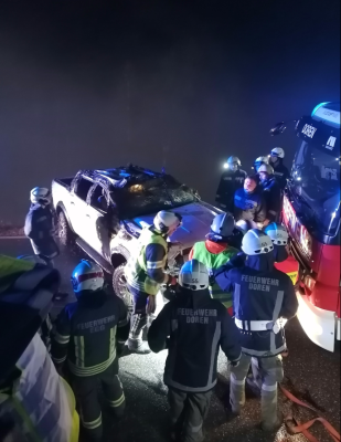 [V.U. > PKW abgestürzt] > Fahrzeugbergung EinsatzdetailsDatum11. November 2023Alarmzeit23:56 UhrAlarmierungsartf11 EinsatzortDoren Moos L4Mannschaftsstärke21FahrzeugeSRF Alarmierte DienststellenOrtsfeuerwehr Doren, Ortsfeuerwehr Egg, Polizei, Rettungsdienst Einsatzbericht: PKW auf die Räder gestellt und mittels SRF-Seilwinde auf die Straße gezogen. No Caption No Caption No Caption No Caption No Caption Mathias Hammerer2023-12-28T20:56:52+01:00