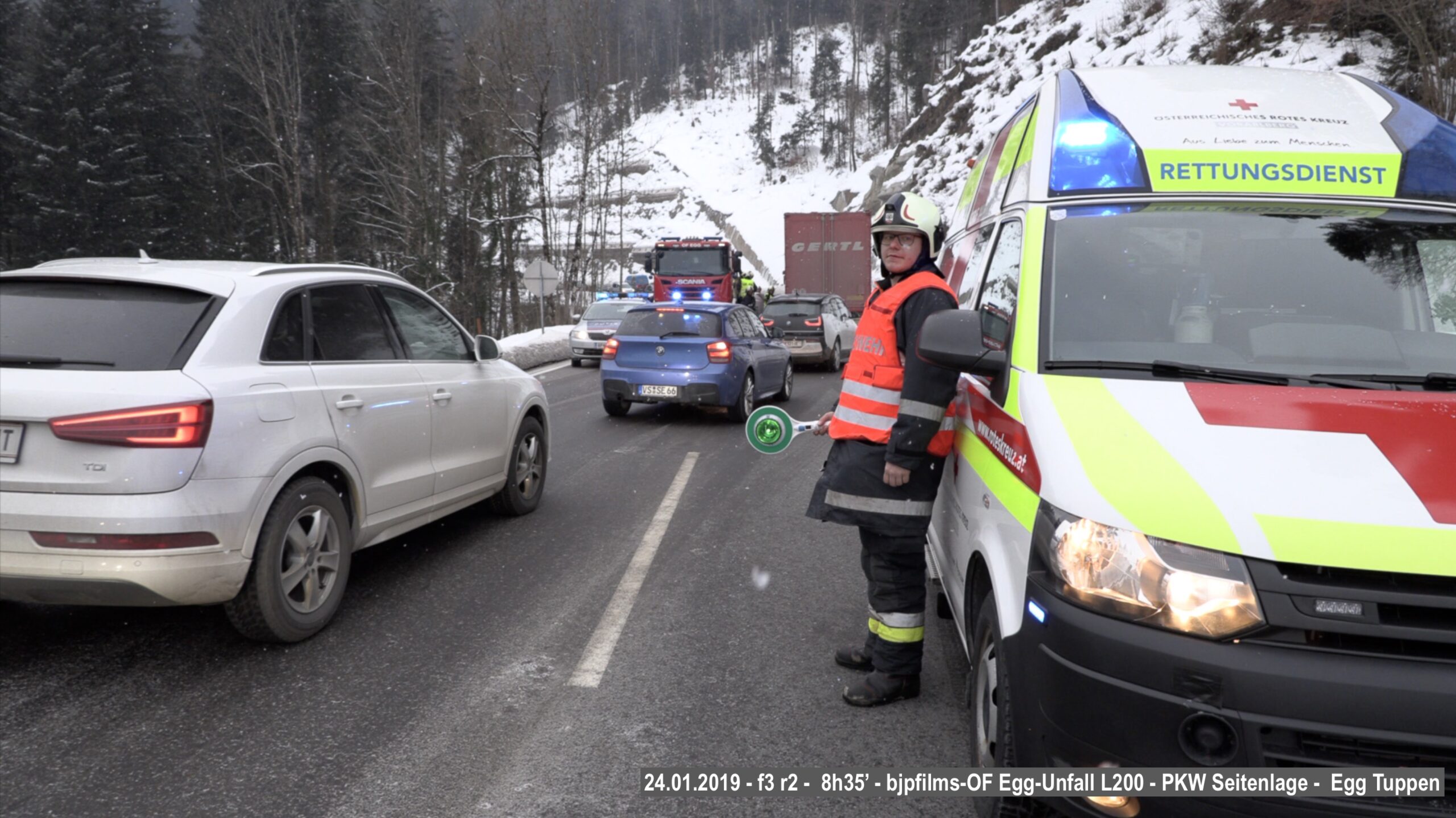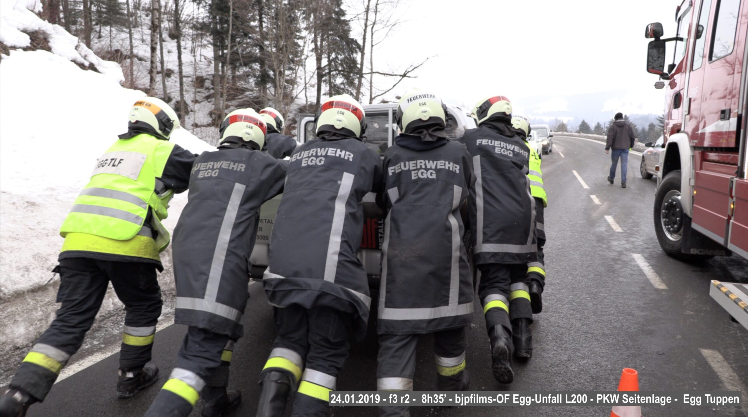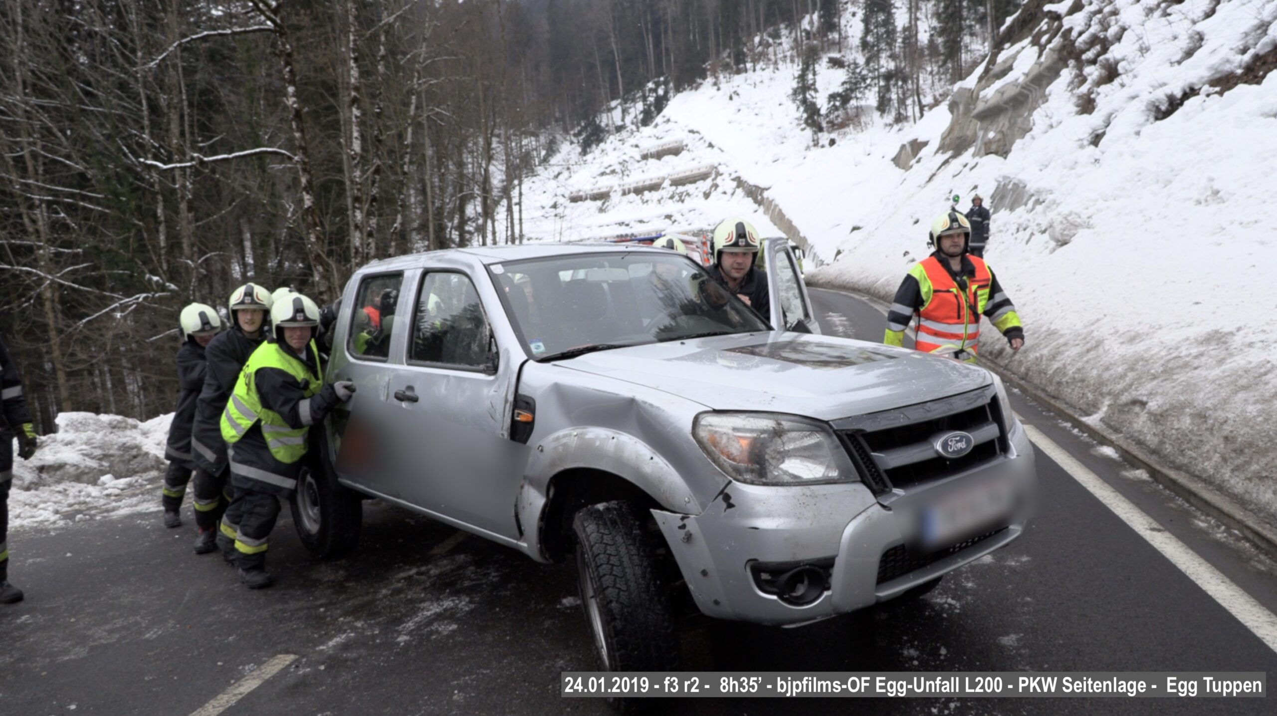 Verkehrsabsicherung L200, Brandschutz, Verkehrsreglung, mit Kran PKW auf Räder gestellt und auf einem Parkplatz abgestellt.