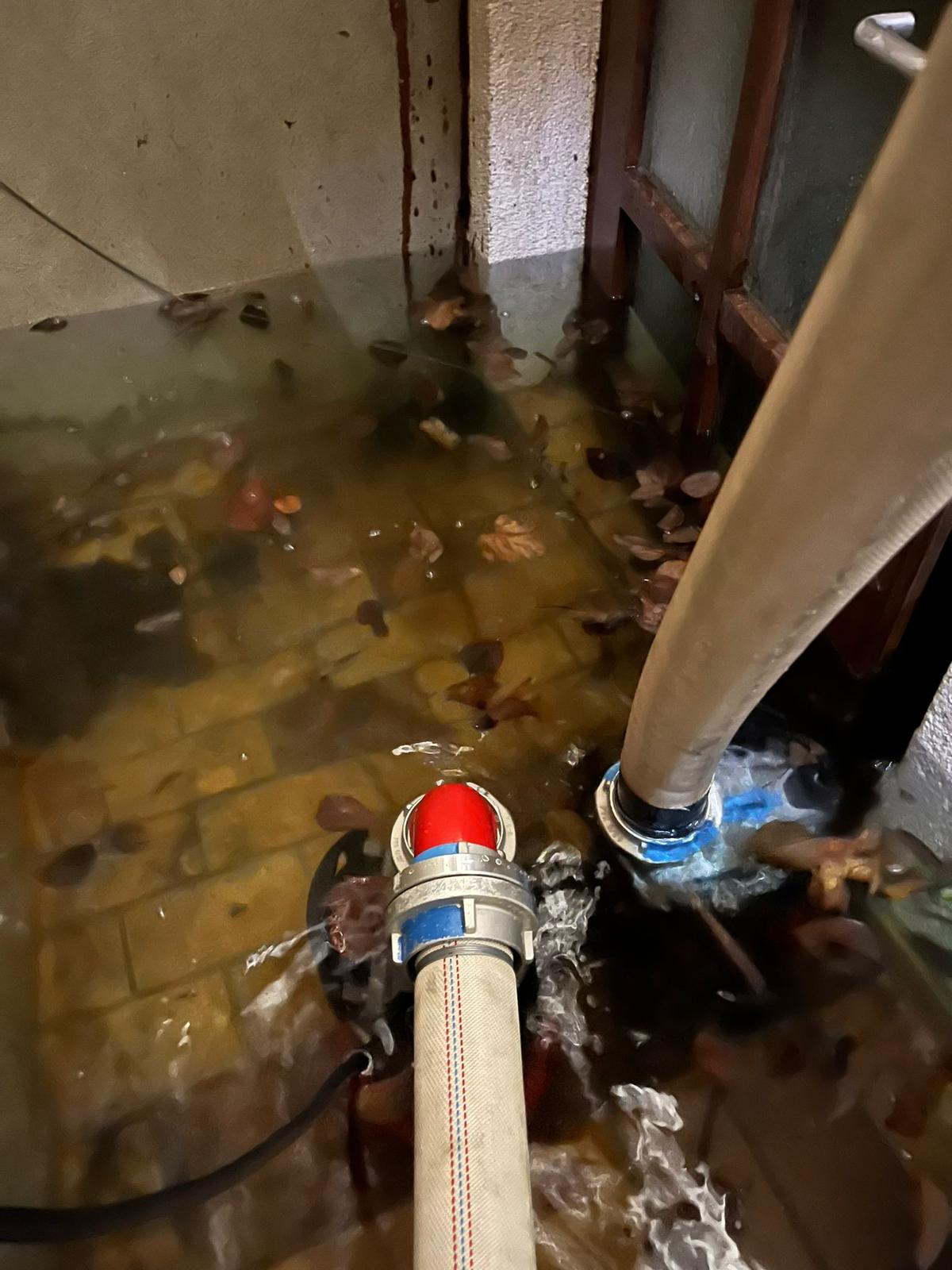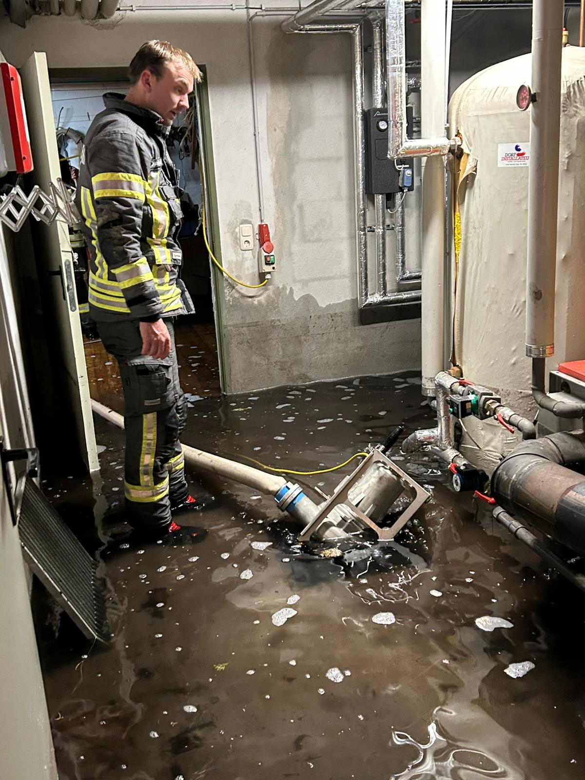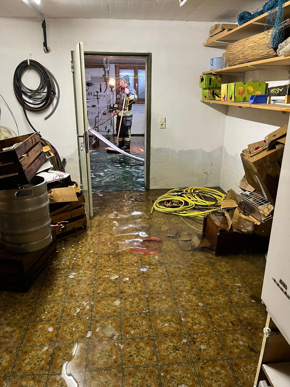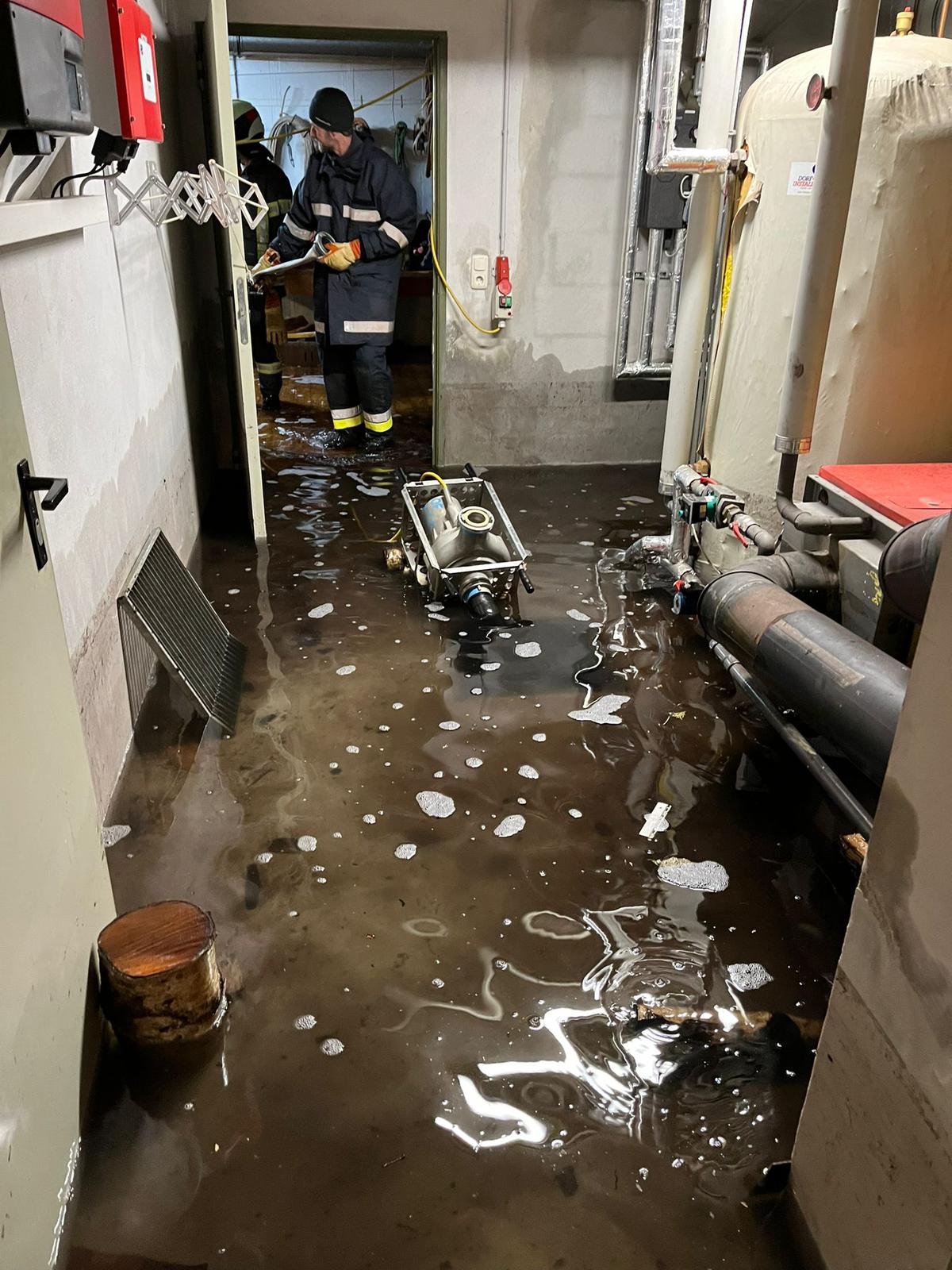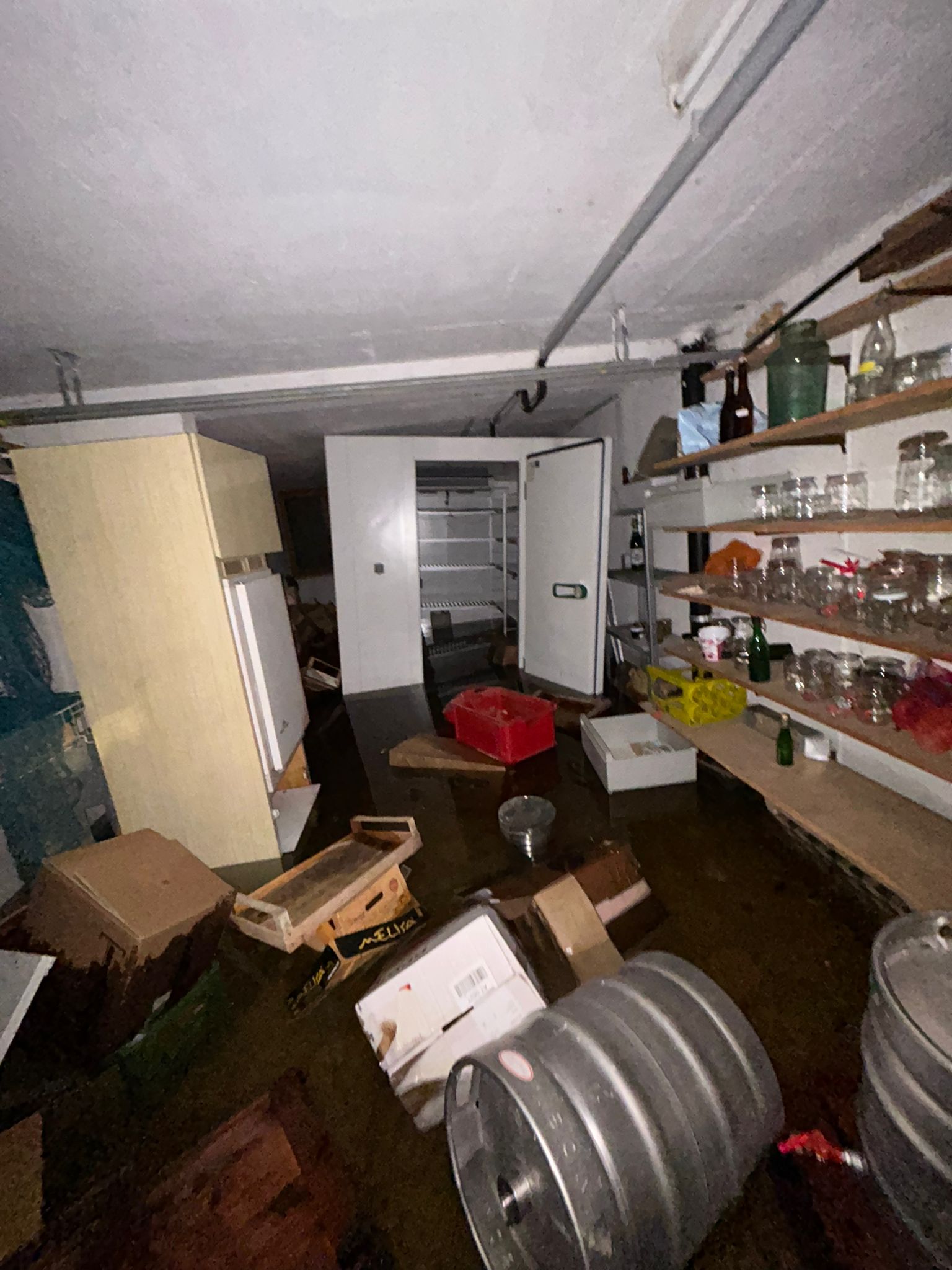 ca. 70cm Wasser im gesamten Keller, mittels Tauch- bzw. Schmutzwasserpumpen und Nasssauger Wasser abgepumpt.